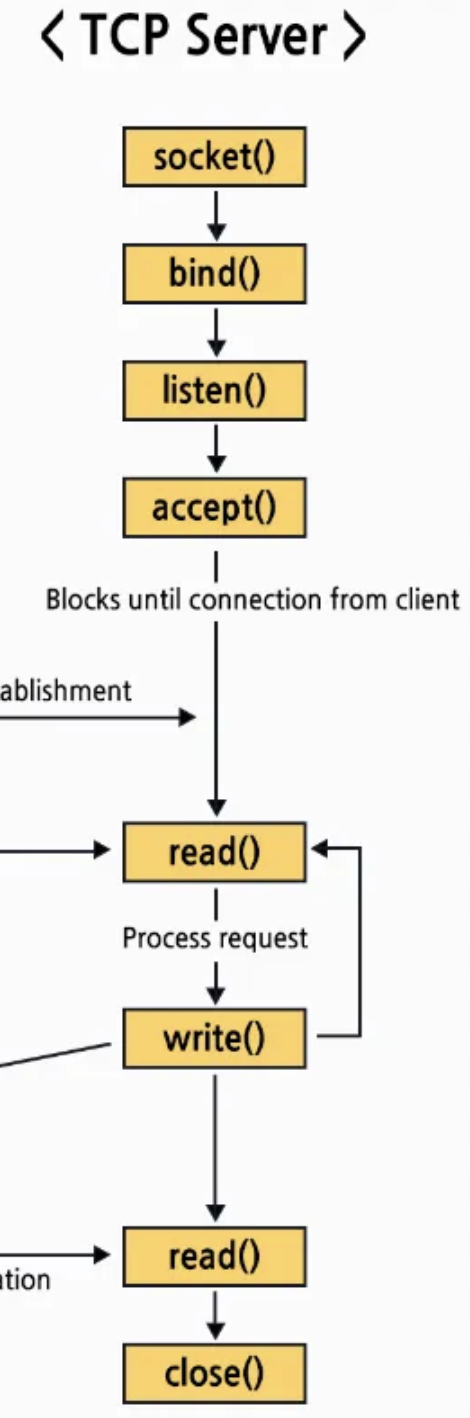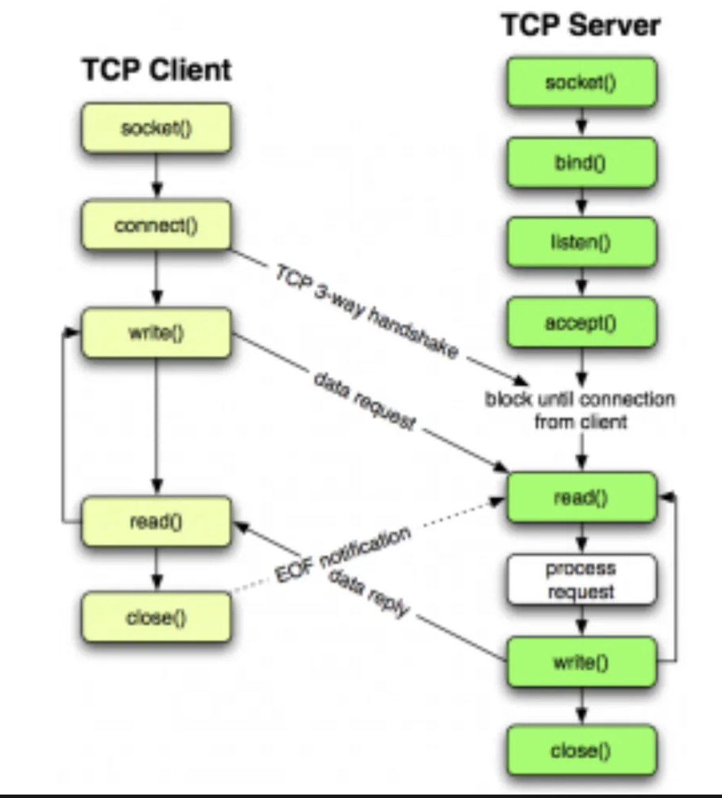 - connect(): 클라이언트가 생성한 소켓을 사용하여 서버에 연결 요청을 보냅니다. (TCP 3-way handshake)