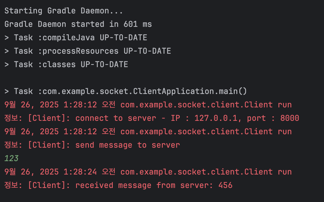 log.info("[Client]: connect to server - IP : " + HOST + ", port : " + PORT);
