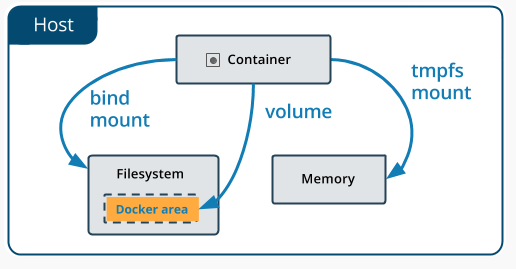 - 일시적이며 Host Memory에만 지속되고, 컨테이너가 중지되면 tmpfs 탑재가 제거되고 거기에 기록된 파일은 유지되지 않습니다.