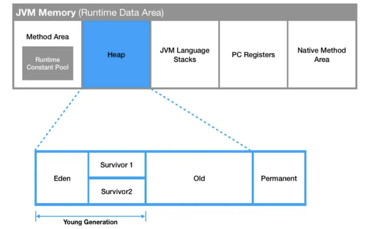이제 GC와 연관된 Heap 영역의 세부적인 구조에 대해 알아보겠습니다. (Permanent 영역은 Java8 이후 Native Method Area으로 대체)