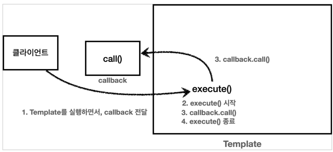 위에 설명드린 strategy를 필드로 받는 경우가 아닌, 파라미터로 받는 경우를 템플릿 콜백 패턴으로 바라볼 수 있습니다. Context가 템플릿, Strategy는 콜백의 관점으로 바라볼 수 있습니다.