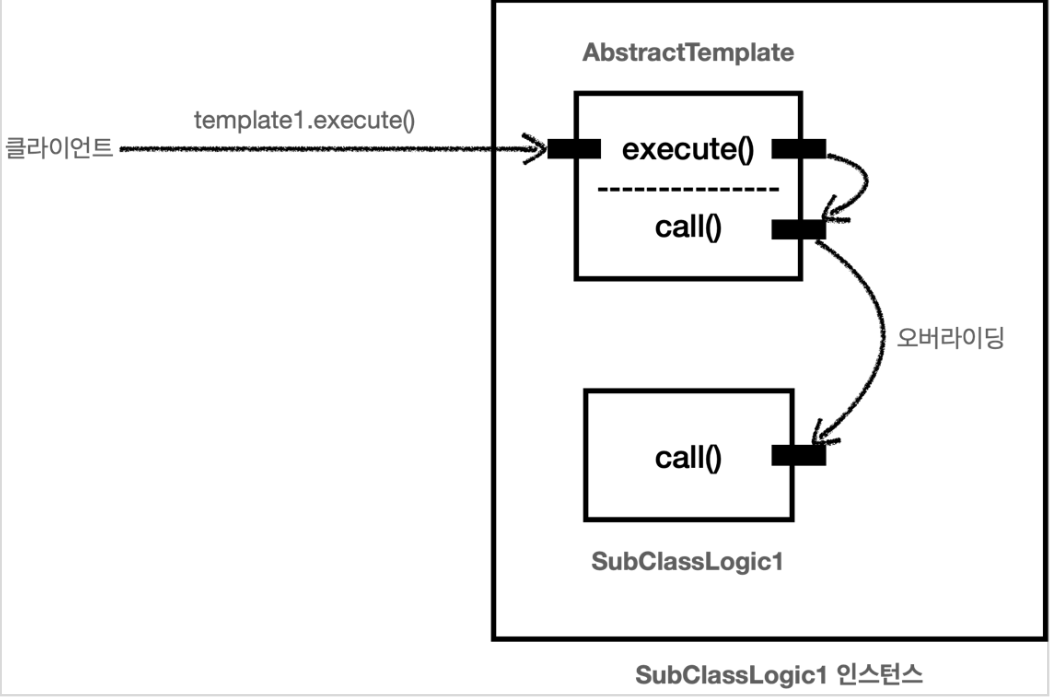 execute() 메서드를 호출하면, 템플릿 로직인 AbstractTemplate.execute()를 실행하고, 중간에 call() 메서드를 호출하게 됩니다. 결론적으로 역할과 구현을 구분할 수 있고, 다형성을 이용해 비즈니스 로직과 부가 기능을 구분할 수 있게 됩니다.