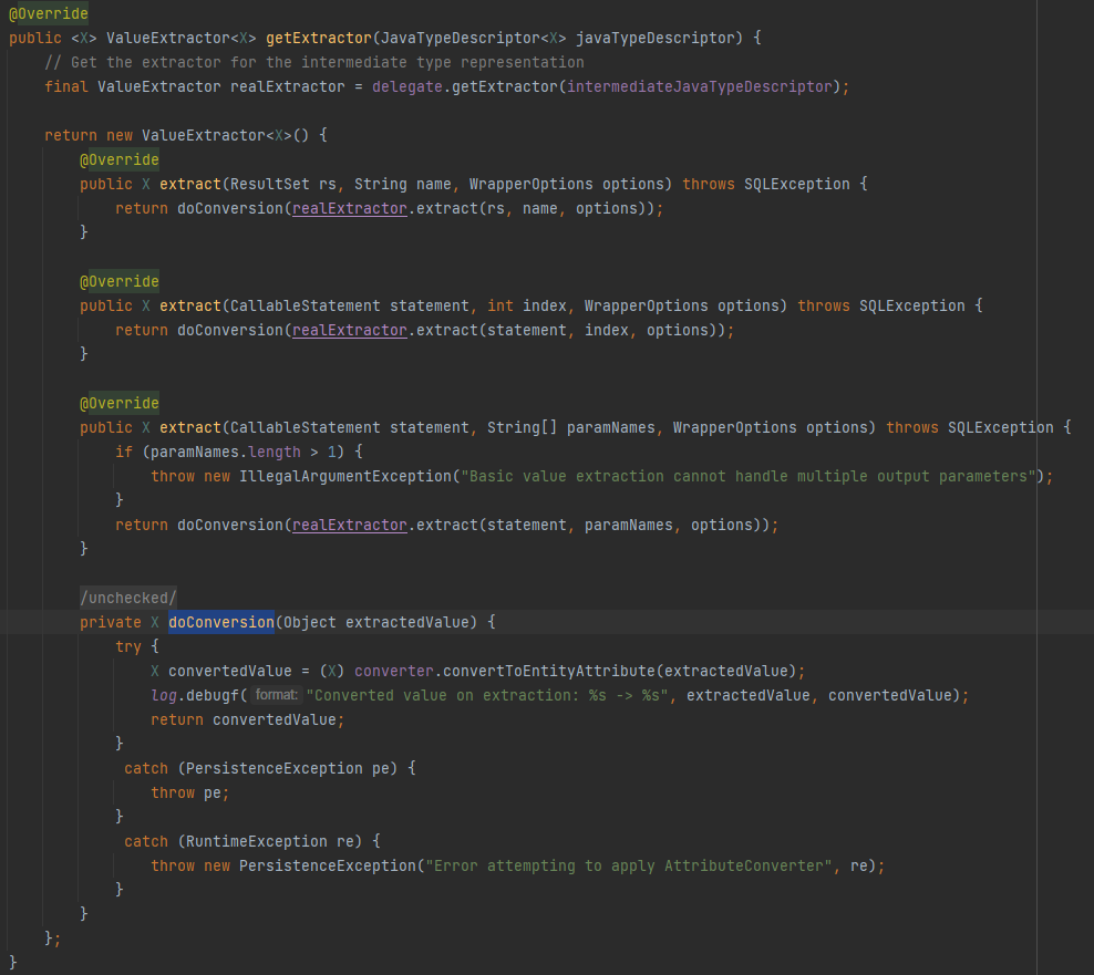 - AttributerConverter의 convertToDatabaseColumn, convertToEntityAttribute 메서드를 override 해주어야 합니다.